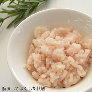 成分値粗タンパク質 20%以上、粗脂肪 1.7%以上、粗灰分 1.1%以下、水分 76.5%以下 (実測値) ナトリウム 46mg/100gカロリー99kcal/100g備考◆本品は非加熱製品です。